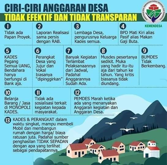 Lengkapnya, berikut ini ciri-ciri penggunaan anggaran desa yang tidak efektif dan tidak transparan: