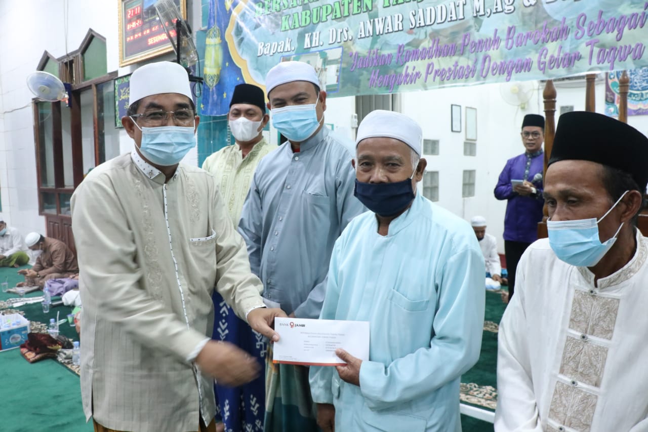 Untuk diketahui, Safari Ramadhan kali ini, Bupati juga menyerahkan dana CSR Bank Jambi untuk Masjid Fatimah sebesar Rp5 juta, Pondok Pesantren Fathul Ulum sebesar Rp10 juta, kemudian ada juga bantuan Al-Quran, Baznas, dan Pemberian kartu ATM. (*)
