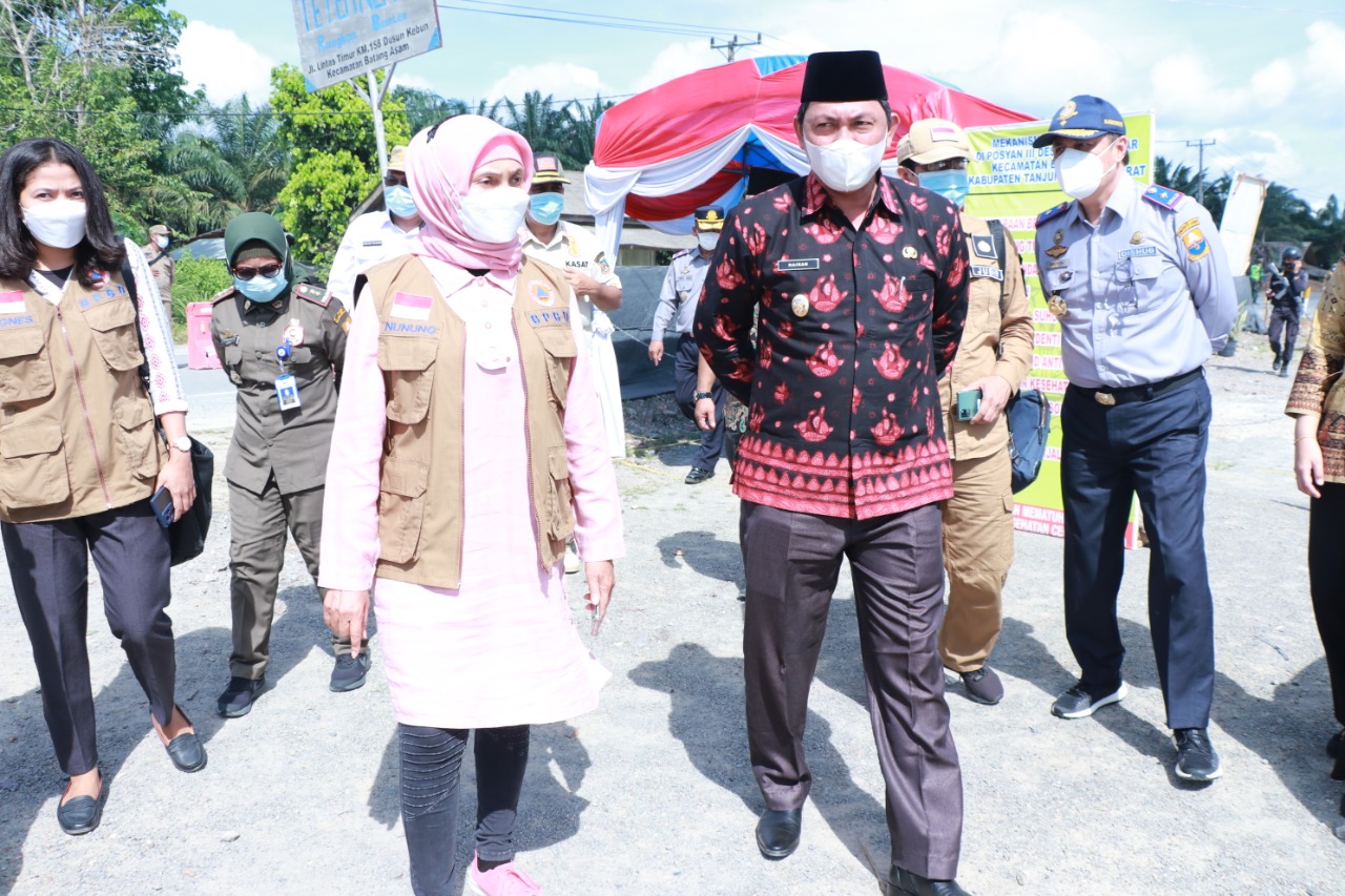 KUALATUNGKAL,RADARDESA.CO – Pj.Gubernur Jambi Hari Nur Cahya Murni didampingi Wakil Bupati Tanjung Jabung Barat (Tanjabbar) melakukan peninjauan Posko Penyetatan Arus Mudik di perbatasan Provinsi Riau, tepat nya di Desa Suban, Kecamatan Batang Asam Kabupaten Tanjabbar, Minggu (16/5/2021).