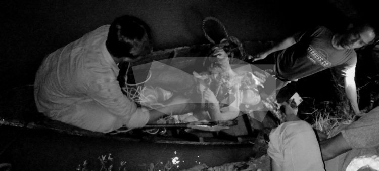 Selajutnya, teman korban Rio, yang melihat hal itu langsung berusaha menolong korban dengan terjun kesungai, akan tetapi korban terbawa arus ke bawah Tongkang TGH.