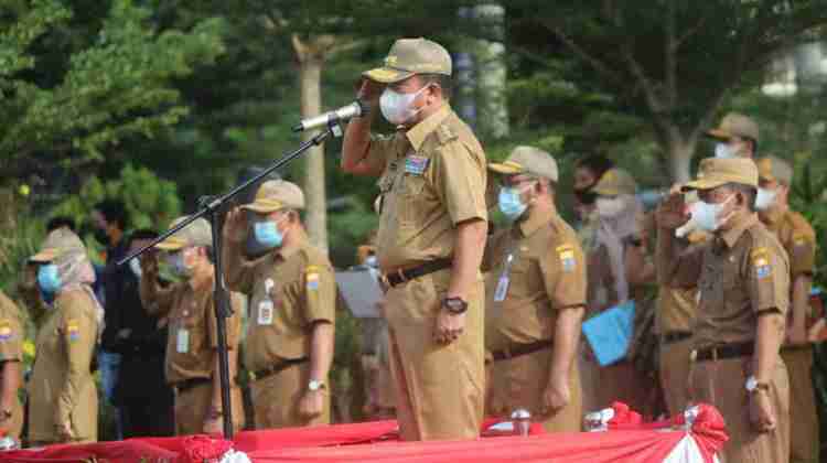 JAMBI,RADARDESA.CO – Gubernur Jambi, Dr. H. Al Haris, S.Sos, MH saat memimpin apel perdana kedisiplinan di Lapangan Kantor Gubernur Jambi mengatakan mulai hari akan memulai membenahi birokrasi agar lebih baik dan bersih.