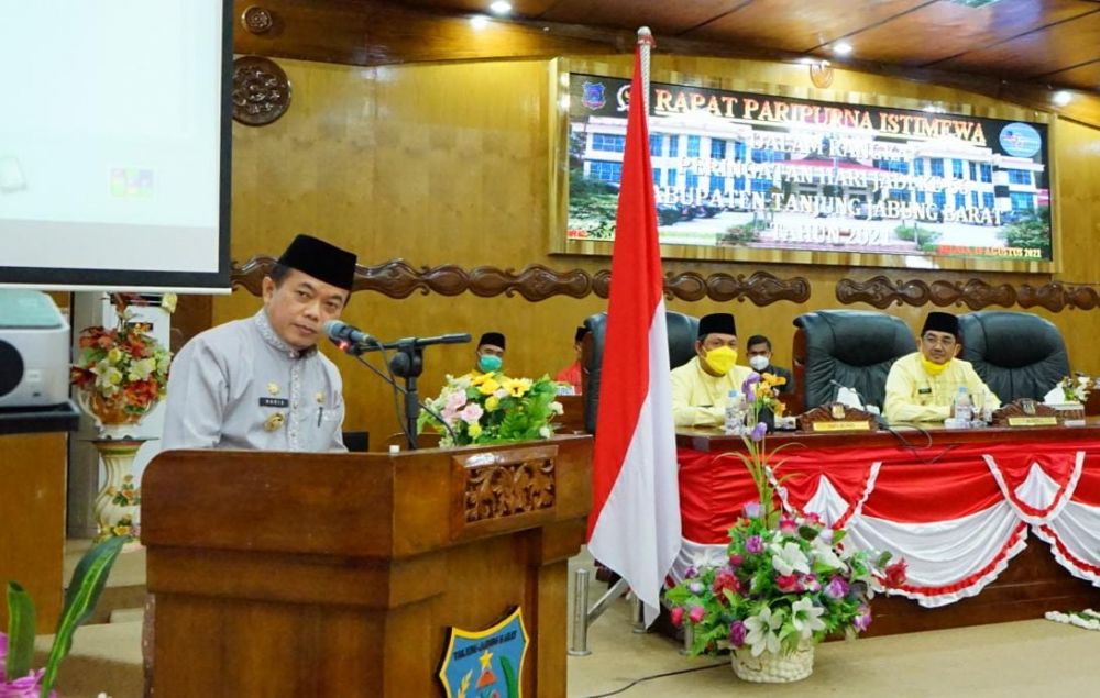 Hal ini terungkap dalam sambutan Gubernur Jambi Dr. H. Al Haris S. Sos M.H, saat menghadiri rapat paripurna istimewa DPRD Kabupaten Tanjung Jabung Barat (Tanjabbar) dalam rangka HUT ke-59 Tanjabbar, Senin (10/08).