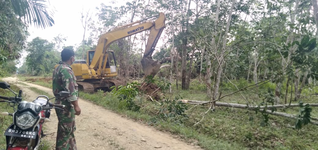TEBO,RADARDESA.CO- Hari pertama Pra TMMD Ke 112 Kodim 0416/Bungo Tebo, Ekskavator langsung beroperasi dengan menyasar pengerjaan pembentukan badan jalan sepanjang 10,8 KM lebar 12 meter.