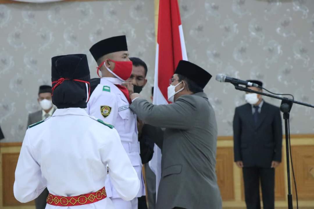 TANJAB BARAT, RADARDESA.CO – Bupati Drs. H. Anwar Sadat, M. Ag mengikuti sekaligus menjadi Pembina Upacara Pengukuhan Pasukan Pangibar Bendera Pusaka Kabupaten Tanjung Jabung Barat Tahun 2021 Jumat (13/08/21).