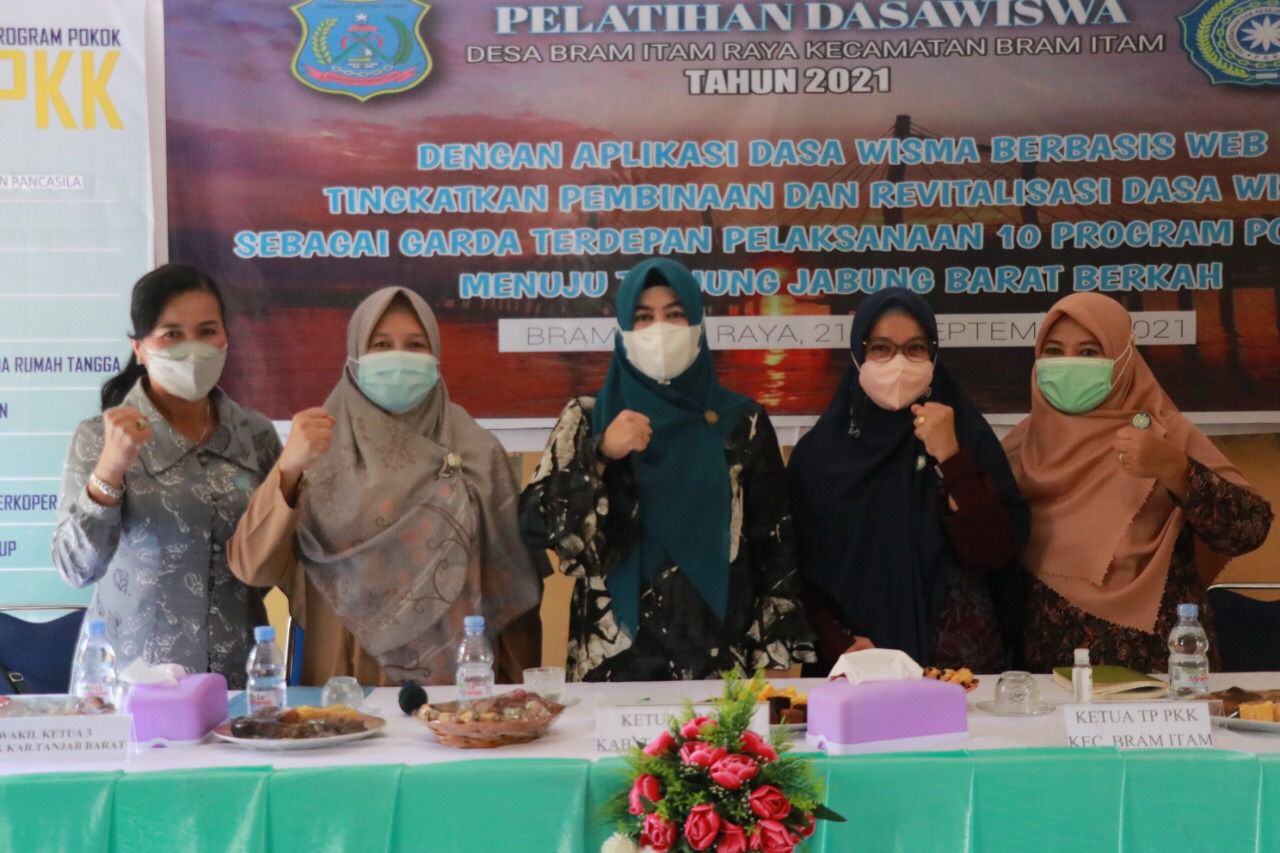 TANJAB BARAT, RADARDESA.CO – Ketua Tim Penggerak PKK Tanjung Jabung Barat, Hj. Fadillah Sadat menghadiri sekaligus membuka pelatihan Dasawisma Bertema Aplikasi Dasawisma Berbasis Web. Kegiatan pelatihan yang ditujukan guna meningkatkan Pembinaan dan Revitalisasi Dasawisma sebagai Garda Terdepan Pelaksanaan 10 Program Pokok PKK Menuju Tanjung Jabung Barat Berkah ini dilaksanakan di Kantor Desa Bram Itam Raya Kecamatan Bram Itam Raya, Selasa (21/09/21).