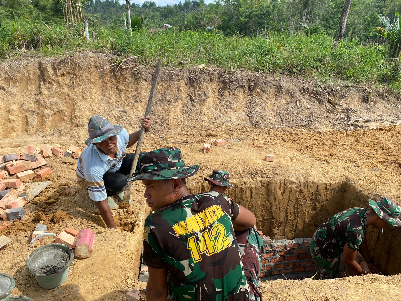 TEBO,RADARDESA.CO – Untuk mendukung sarana di rumah layak huni yang dibangun satgas TMMD ke-112 Kodim 0416/Bungo Tebo, untuk guru honor SD yakni ibu Sianipar di Dusun Kemantan, Kelurahan Sungai Bengkal. Satgas dubantu warga membuat lobang septic Tank tepatnya di belakang rumah tersebut.