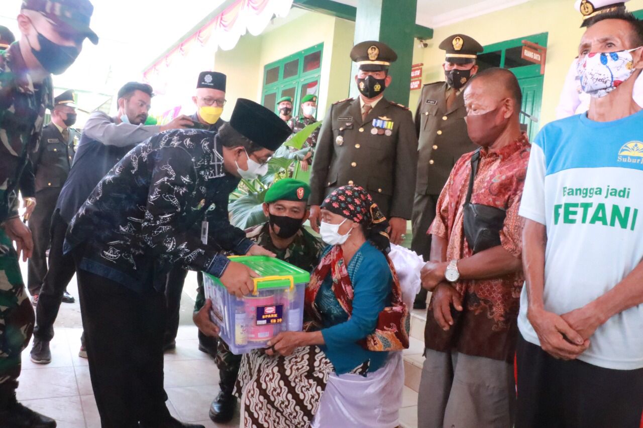 Setelah upacara peringatan HUT Ke-76 TNI secara virtual selesai bupati Drs. H. Anwar Sadat, M.Ag beserta unsur forkopimda melakukan pemotongan tumpeng dan penyerahan bantuan penanggulangan covid-19 dari SKK Migas-petro china international jabung Ltd berupa 1000 paket sembako untuk masyarakat.