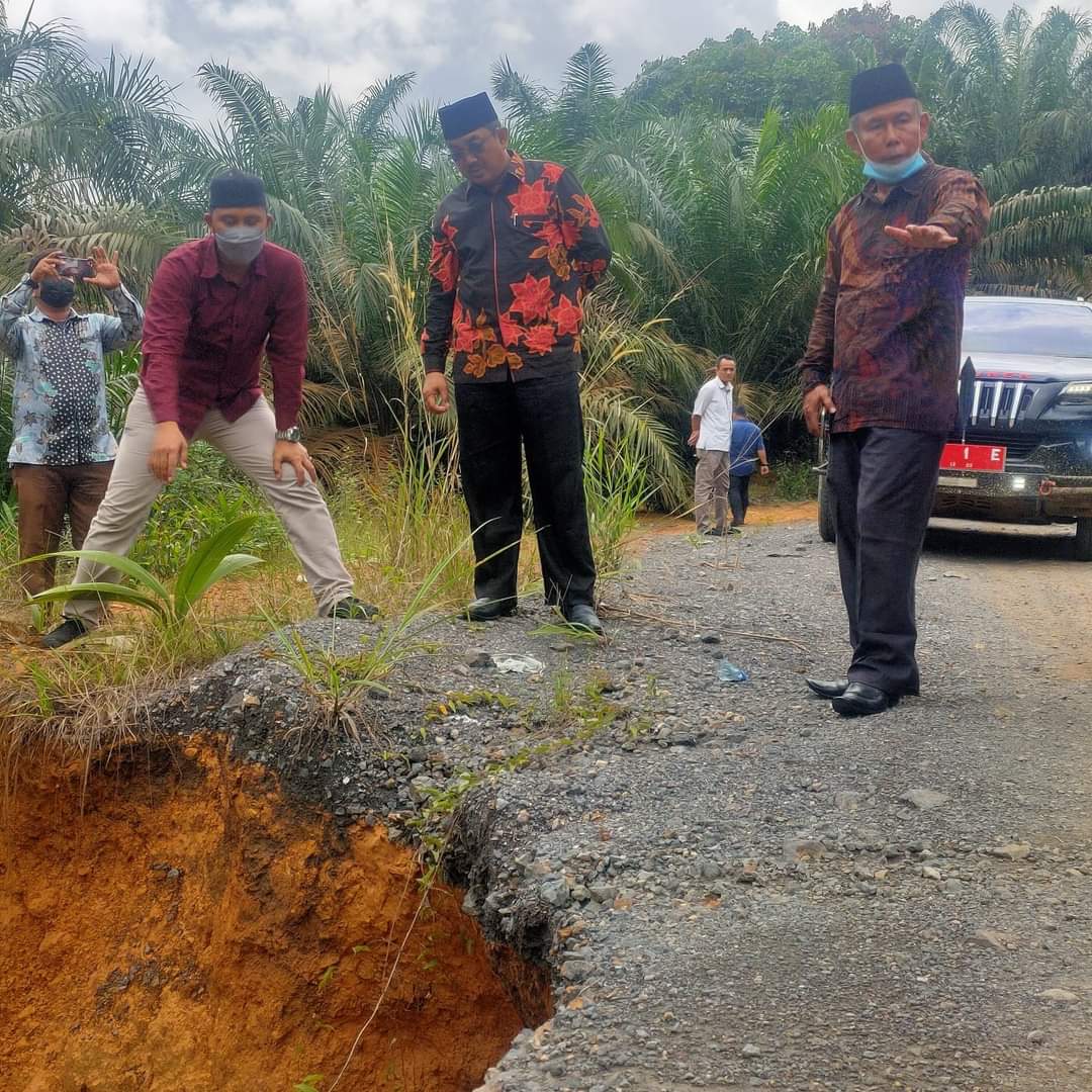 KUALATUNGKAL, RADARDESA.CO – Meninjau langsung lokasi gorong-gorong amblas yang berada di Desa Bukit Harapan, Kecamatan Merlung, Bupati Tanjung Jabung Barat, Drs. H. Anwar sadat M.Ag menghimbau pengguna jalan tersebut agar lebih waspada, Minggu (14/11/21).