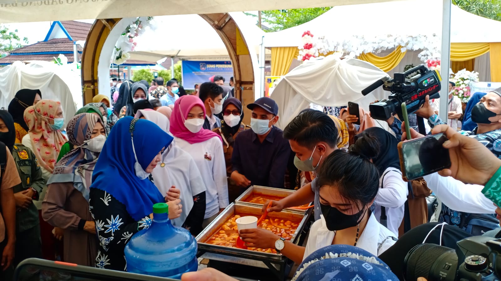 Pesta rakyat yang di gelar di Rumah Dinas (Rumdis) Bupati Tanjabbar, Sabtu (26/2/2022) dalam rangka refleksi 1 tahun kepemimpin Anwar Sadat dan Hairan tersebut di padati masyarakat ditengah gencarnya covid 19 varian omicrun.