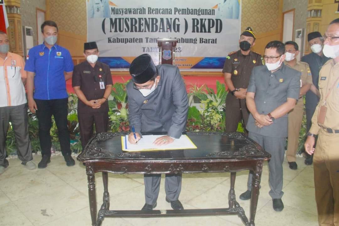 KUALATUNGKAL, RADARDESA.CO -Bupati Tanjung Jabung Barat, Drs. H. Anwar Sadat, M.Ag hadiri sekaligus membuka secara resmi acara Musyawarah Rencana Pembangunan (Musrenbang) RKPD Kabupaten Tanjung Jabung Barat Tahun 2023 yang di selenggarakan di Balai Pertemuan Kantor Bupati Tanjung Jabung Barat, Senin (21/03/22).