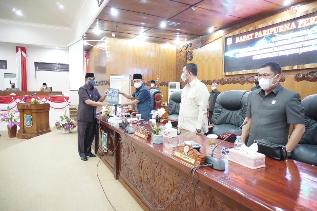 Bupati Tanjab Barat Drs. H. Anwar Sadat M. Ag dalam sambutannya menyampaikan bahwa, 3 ( Tiga) Rancangan Peraturan Daerah (Raperda) yang menjadi pembahasan meliputi Raperda tentang Perubahan Kedua Atas Peraturan Daerah Nomor 4 Tahun 2015 tentang Pemilihan Kepala Desa, Raperda Tentang Pengelolaan Keuangan Daerah, dan Raperda Tentang Penyerahan Prasarana, Sarana dan Utilitas Umum Perumahan.