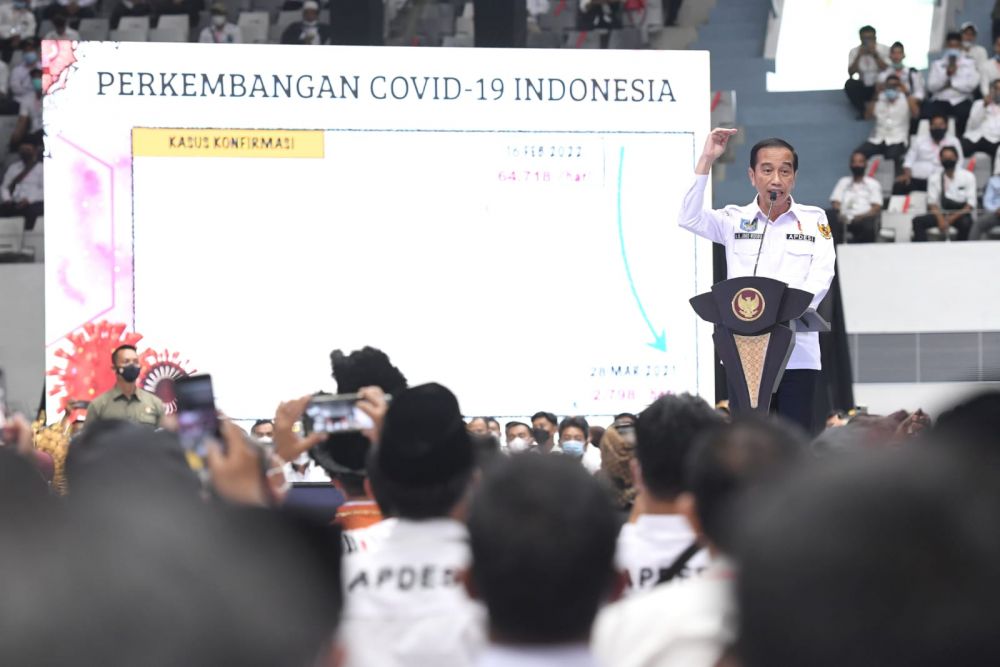 “Varian Omicron 64.000 (kasus) saat tinggi-tingginya, saat itu di pertengahan Februari. Kemarin sore 2.700 (kasus) alhamdulillah, dari 64.700 turun menjadi 2.700 (kasus). Ini juga berkat kerja keras Bapak-Ibu semuanya dalam memberitahu masyarakat, dalam menganjurkan masyarakat untuk vaksinasi, untuk memakai masker, untuk menjaga jarak, untuk cuci tangan,” ujarnya.
