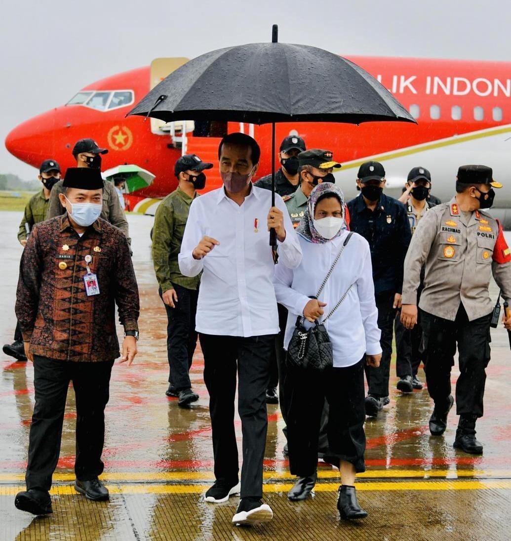 JAMBI, RADARDESA.CO – Gubernur Jambi Dr.H. Al Haris,S.Sos.,M.H., berserta istri, Hj.Hesnidar Haris,S.E., secara langsung mendampingi Presiden Republik Indonesia, Ir. H. Joko Widodo (Jokowi) berserta Ibu Negara, Hj. Iriana saat melakukan kunjungan kerja (kunker) ke Provinsi Jambi, Kamis (07/04/2022).