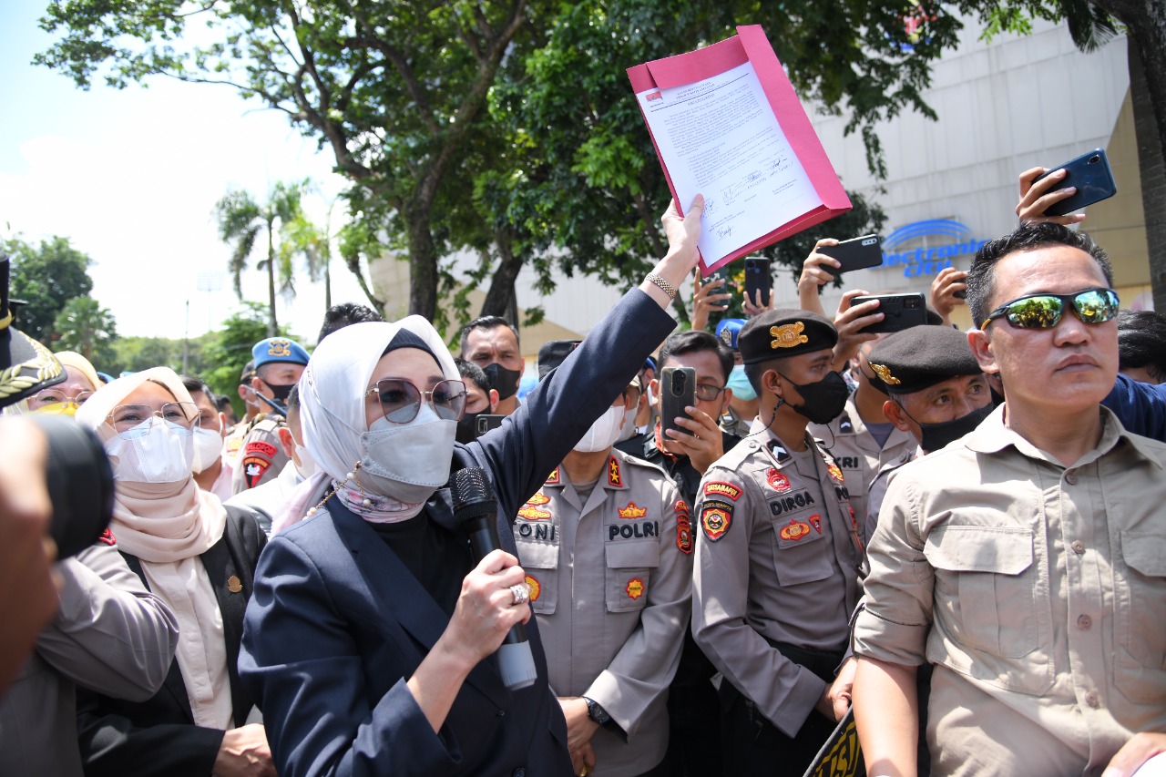 Ia juga menemui mahasiwa yang sedang melakukan aksi demonstarsi di luar Gedung DPRD Provinsi Sumatra Selatan setelah usai acara pelantikan anggota DPRD periode 2019-2024 berlangsung.