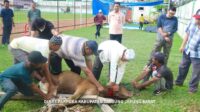 KUALATUNGKAL, RADARDESA.CO – Dinas Pariwisata Kepemudaan dan Olahraga (Disparpora) Kabupaten Tanjung Jabung Barat (Tanjabbar) laksanakan penyembelihan hewan qurban.