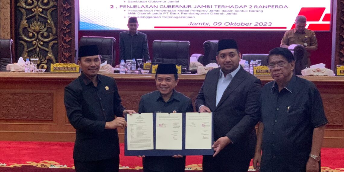 Pada kesempatan ini, turut dilakukan penandatangan antara DPRD Provinsi Jambi dalam hal ini pimpinan DPRD Provinsi Jambi bersama dengan Pemerintah Provinsi Jambi dalam hal ini Gubernur Jambi.(***/rf)