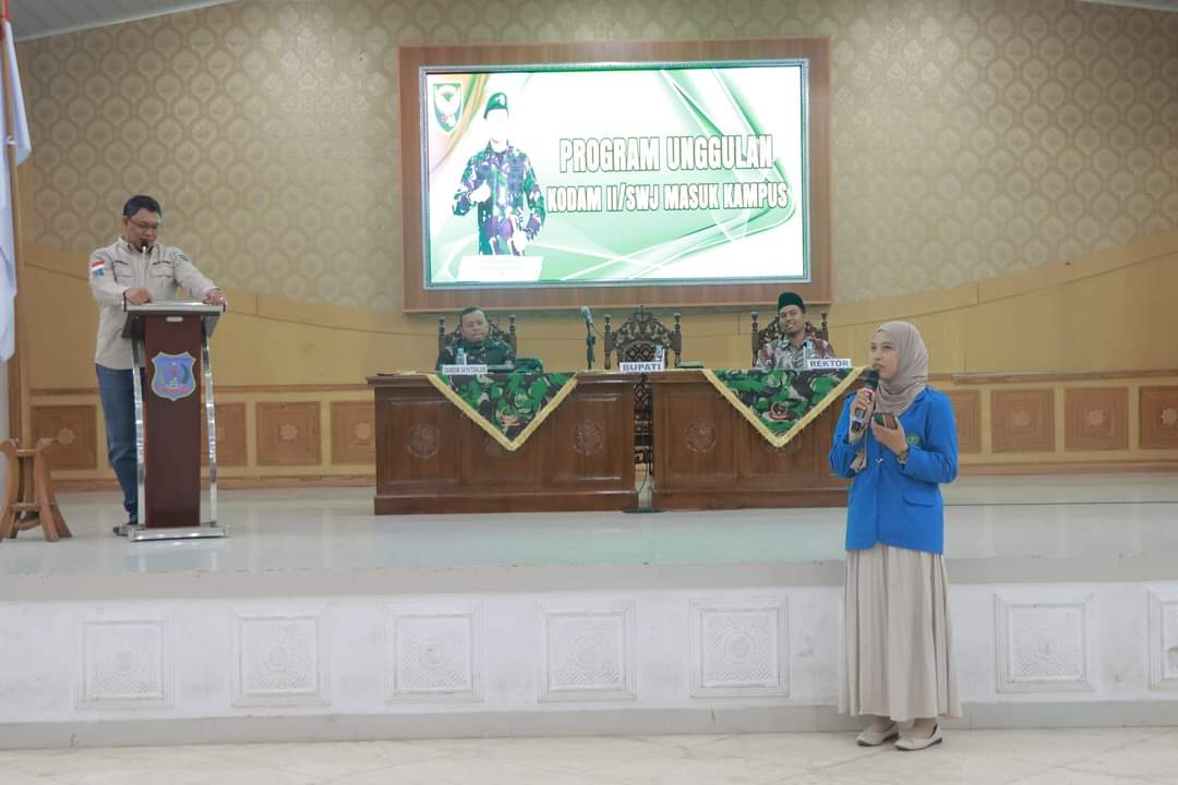 Dalam sambutannya, Wabup mengatakan, sangat mengapresiasi kegiatan Kodam II/Sriwijaya Masuk Kampus yang merupakan salah satu upaya untuk meningkatkan wawasan kebangsaan dan cinta tanah air.