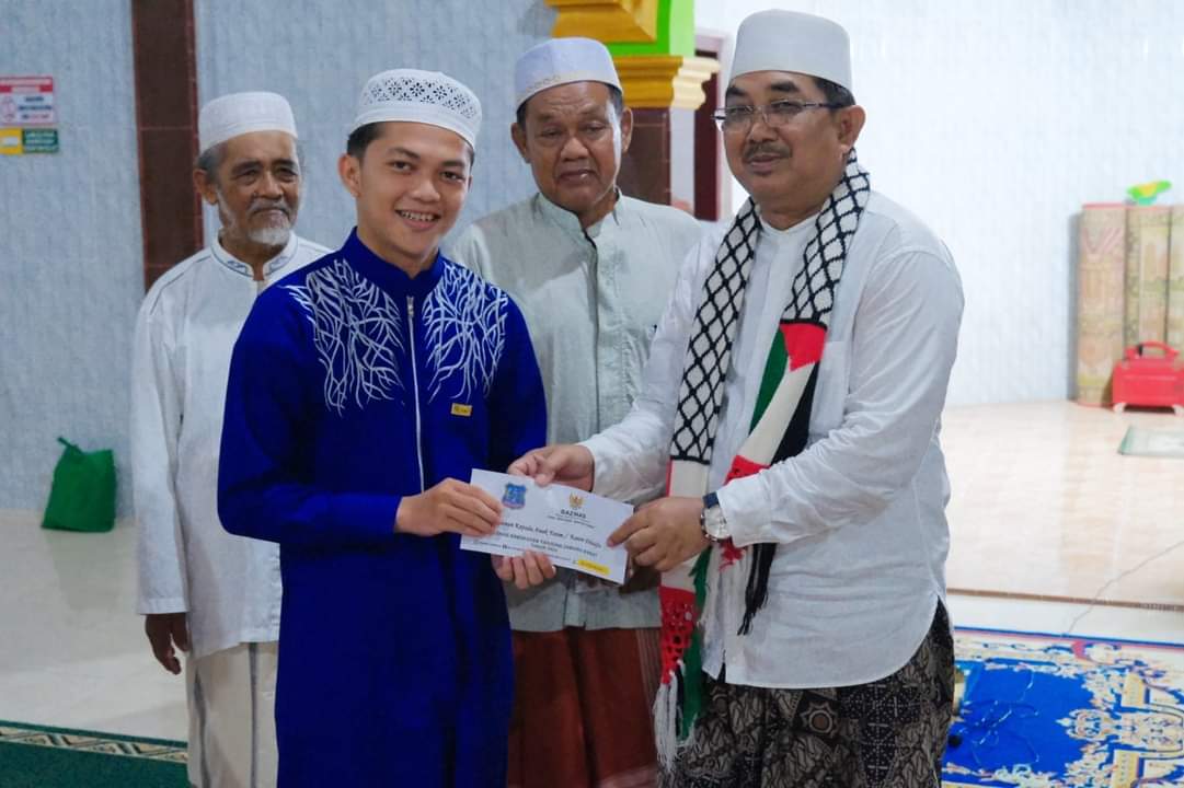 Dalam kesempatan tersebut, bersama Badan Amil Zakat Nasional Tanjabbar, Bupati memberikan bantuan sebesar 10 juta dan paket sembako untuk Masjid Nurul Yaqin Desa Lumahan.
