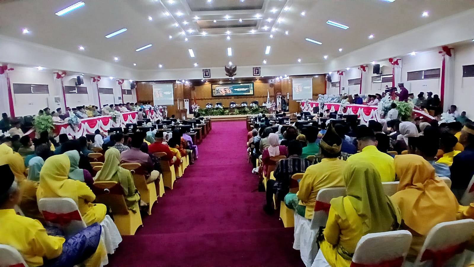 Ketua DPRD Tanjab Barat, dalam sambutannya, menyampaikan apresiasi setinggi-tingginya atas kehadiran seluruh tamu undangan serta menegaskan pentingnya momentum Hari Jadi ini sebagai pengingat sejarah dan pemacu semangat membangun daerah.