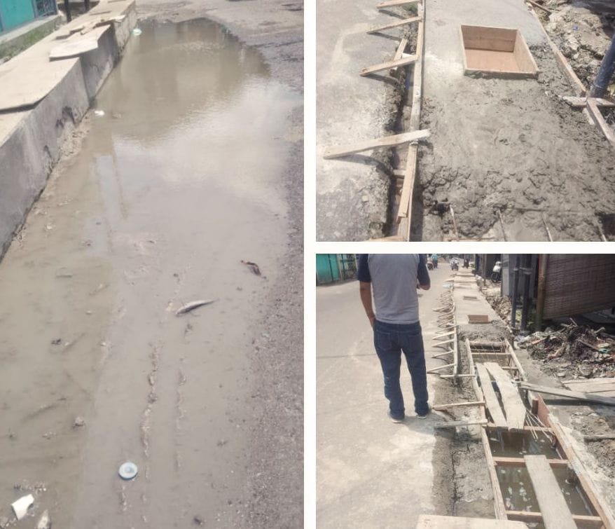 ” Drainase dibangun kan untuk mengalirkan air agar tidak terjadi genangan air di wilayah kami ini, faktanya sekarang sejak dibangun drainase malah air jadi tergenang, ” katanya.